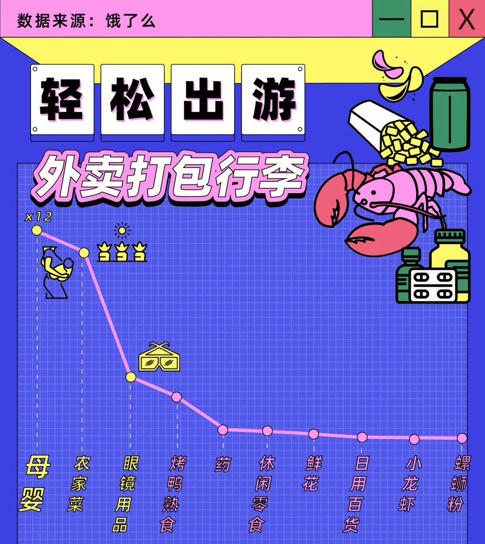 小长假拉动早餐宵夜消费,农家菜增长11倍 假期也“意外”让年轻人过上更规律的“加餐”生活。饿了么报告发现,环比节前,消费者午、晚餐外卖需求略有下降,反之,早餐(5-7点)和晚上22点之后的宵夜需求增长显著。 其中,又以酒店和景区的早餐宵夜需求增长最为旺盛。从网友晒单的出行攻略也可以发现,“吃饱拼早起、避人流出发”非常重要。晚上累了回到酒店,通过饿了么外卖下单城市特色美食,还可以让身体提早休息的同时却不耽误享用美食。 受外地游客的偏好和出行临时需求等影响,饿了么数据显示,今年五一期间,农家菜外卖增长11倍,母婴用品、药品、日用品等临时外卖需求,和小龙虾、螺蛳粉等热门宵夜订单量也均增长2倍及以上。 以游客为例,他们最爱在酒店点的外卖单品包含了咖啡、粥、生煎等早餐,和烧烤、螺蛳粉、奶茶等宵夜。同时,感冒药、健胃消食片、肠胃药和创口贴等也是他们出门应急最常购买的药品外卖。 节日消费热情旺,线下玩乐成交涨10倍 五一小长假期间,消费的“爆发式复苏”同样体现在线下。饿了么数据显示,今年五一小长假以来,线下生活服务类消费同比增长近4倍,环比增长超2倍。其中,玩乐类项目的消费额同比增长超10倍,环比增长近3倍。从线下消费热情来看,排名前五的城市分别为上海、杭州、北京、深圳和广州。 在上海,第二次参与上海五五购物节的饿了么平台,联合6万家海派特色优质品牌,累计补贴超20亿元,在上海打造全城参与的“新海派生活节”,引发消费热潮。仅5月1日晚“嗨购上海”2021五五购物节4小时晚会期间,上海消费者在饿了么下单了约5万份烧烤,和近2万份小龙虾作为宵夜。当晚从饿了么平台配送出的奶茶外卖,首尾相接叠起来的高度,相当于15个东方明珠。 |