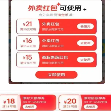 “0元购的茶百道、2.8元的绝味鸭脖、6.28元的袁记云饺……”日前,在社交平台上,网友“葫芦王”晒出自己的“外卖战绩”,有的外卖预约单已经排到了周四。上周以来,持续不断的大额外卖券突然频频被塞到用户账户中,“满18减18”“满25减22”,甚至0元吃喝也不是不可能。 |
